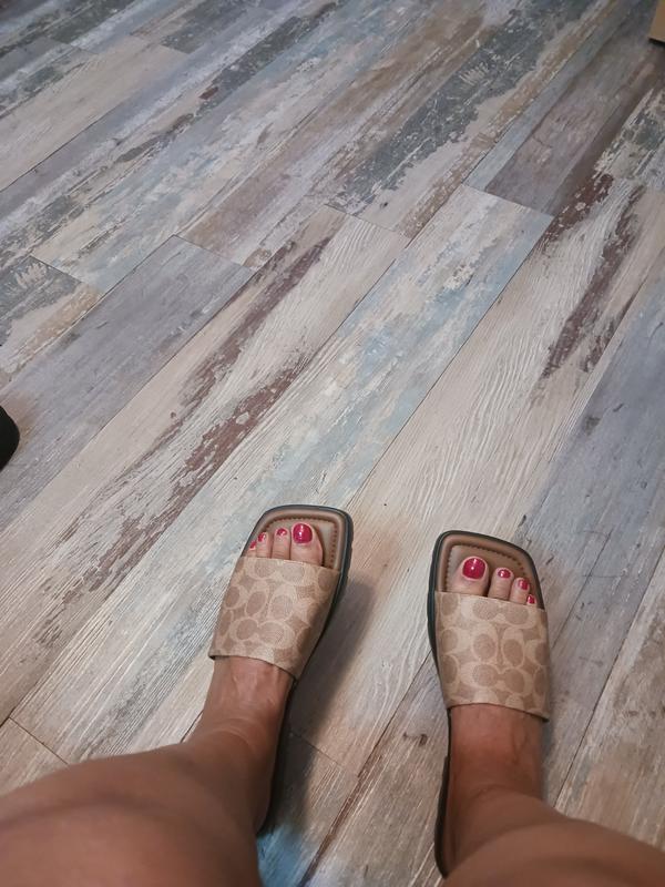 I like the bottom sole part. I actually like the square toe. However, the band that crumbs across your foot, if you have a tiny petite foot, it kind of overwhelms it. I even like the golden letter "C" but the top part was too long.And wide kind of remind me of the wedges in the nineties that were really big and clunky. I ended up returning them.
