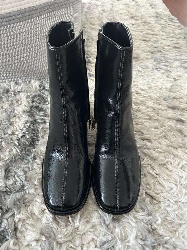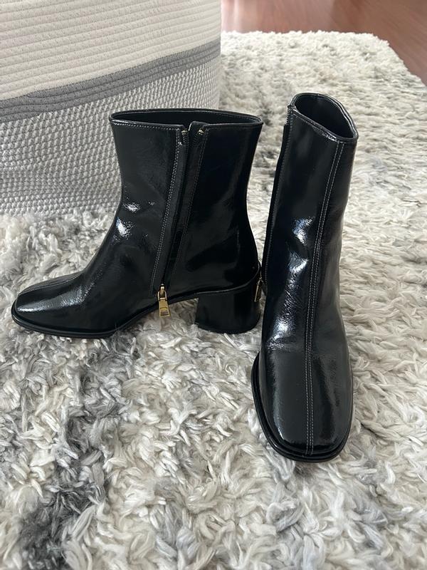 Beautiful boots! I love the zipper and the “c” detail in the back and the chunky heel makes them very wearable and easy to walk in and zipper makes them easy to take on and off. I will say they do run a bit wide though I have more narrow feet and they’re a bit big on me but overall really nice shoes