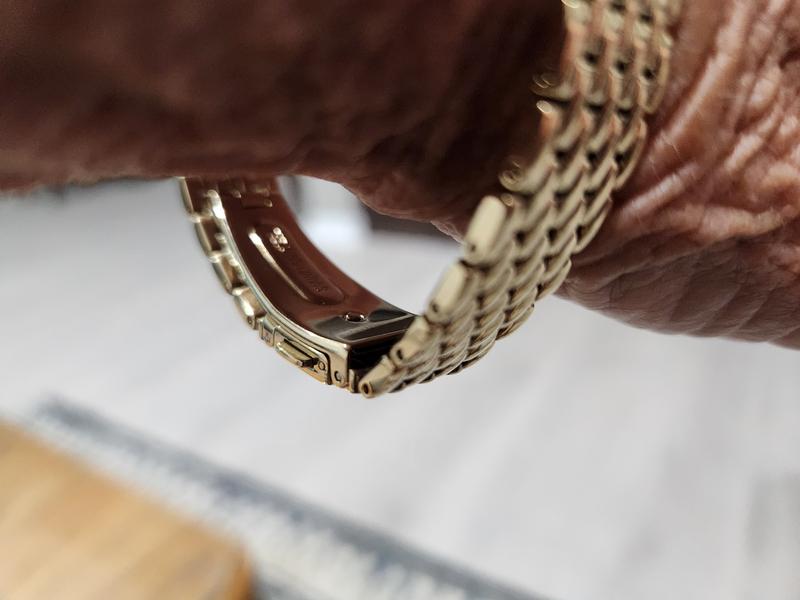 • Strap: Gold Stainless Steel Bracelet with Push-Button Deployment