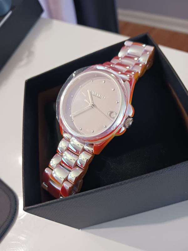 I was excited that this was an iridescent watch but in the photo it was difficult to tell if there was more color to it. In reality it is a gorgeous coral pink iridescent.