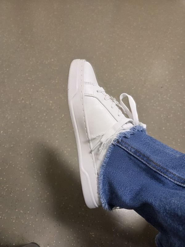 Perfect summer sneaker. Its a beautiful crisp white with soft insoles. There is enough weight for support without feeling heavy. Comfortable to wear all day. Does not make feet overly hot. I love there isnt overdone branding. Just enough for a classy logo. Barely there- which is exactly what I like. Feels durable and that it will last for many seasons. Looks great with jeans and a tee but can also be dressed up with a cute dress or skirt. Comfortable feeling against heel and front of foot. Not overly stiff.