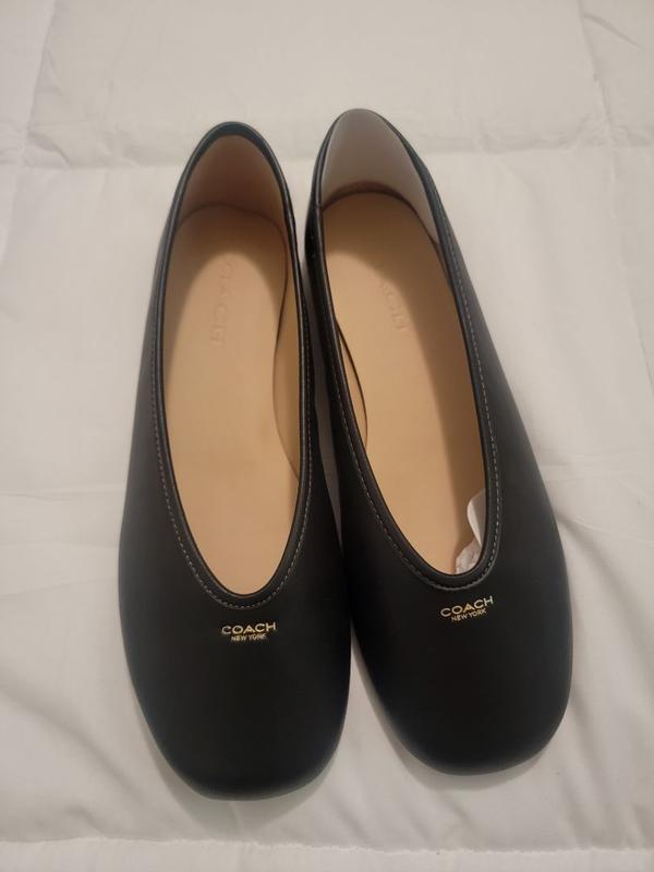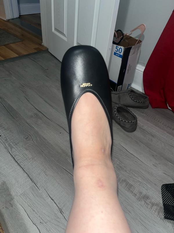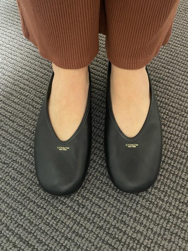 The coach ballet flats are extremely comfortable. The leather is so soft on them. I will say the shoe runs large because the 7.5 was too big on me so I would size down. They’re great for work! The shoes were packaged very well
