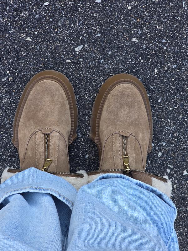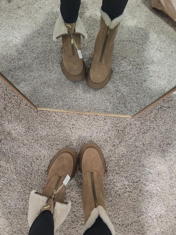 These boots are so cute. I like that you can wear them two different ways. They have sheep skin in the inside so theyre perfect for the winter. They are suede & stylish.