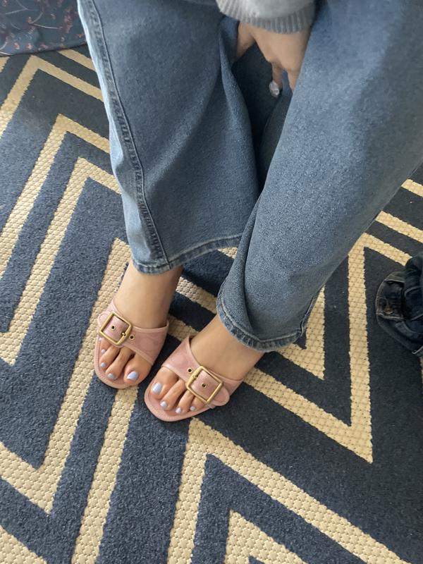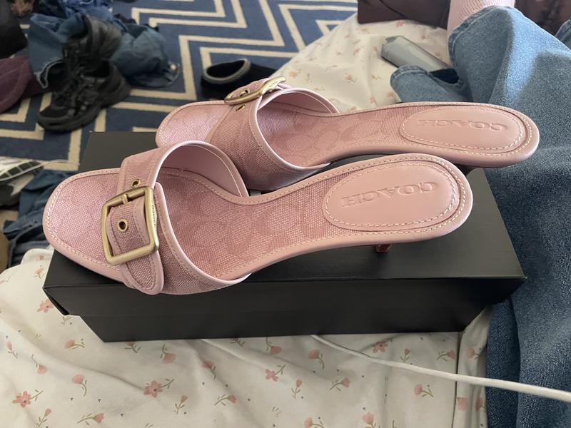 I love them! These were my first ever coach purchase and they arrived fast and in the official coach box very secure there was no damage to the box nor the sandals. I’m usually a 9-9.5 I saw others saying to size up so I did to a 9.5 and they’re perfect! Comfortable to walk around since it’s a tiny heel adjustable straps if you’re foot is on the wider side but overall I love them!