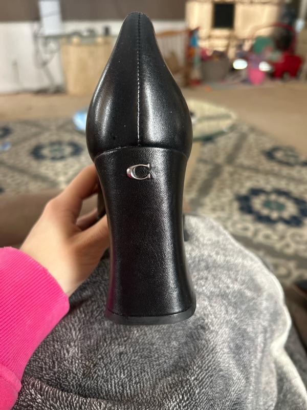 The Coach Sculpted Leather Pump delivers a beautiful blend of polish and comfort, with its sleek silhouette and premium leather that feels luxurious right out of the box. The heel height is elegant without being overwhelming, making it versatile enough for both office wear and nights out. It holds up well through long days, and the craftsmanship feels sturdy and refined. The only drawback is that it takes a short break-in period and runs slightly narrow, but once softened, it becomes a reliable