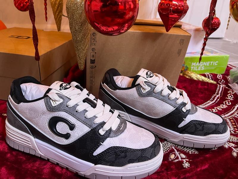 The Coach SoHo Sneaker with Mixed Signature is stylish, comfortable, and feels well-made. I love the design and how easily it pairs with both casual outfits and slightly dressed-up looks. The shoes felt comfortable right out of the box with minimal break-in time, and the weight is perfect — not too heavy, but still sturdy. The quality of the material looks durable, and the traction on the bottom grips well when walking. Sizing runs true in my experience, and they maintain their shape well after wearing multiple times. They’re a bit pricier than regular sneakers, but the craftsmanship and look make them worth it if you want something fashionable and long-lasting.