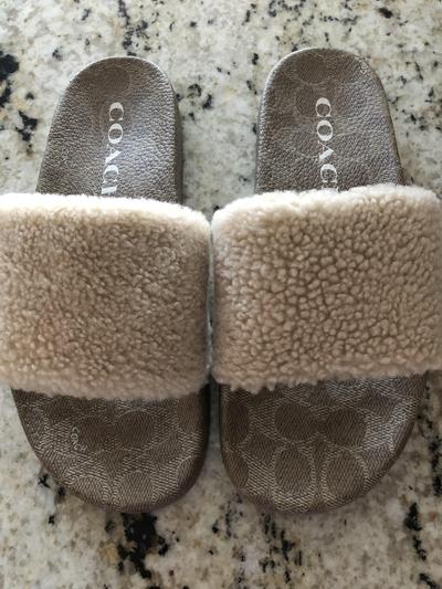 I feel like these needs to be 1/2 larger and not as wide because my foot seems to slide out a bit. Otherwise, they are super comfy and cute. Maybe I would have kept them but the Color is so disappointing because it does not match my Coach brown/tan monogram bags and belts. This one is light beige to gray sadly.