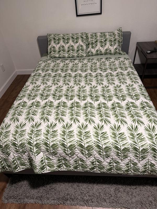 We are loving this quilt set. We were looking to switch up our bedding and this seems to be the answer! It keeps the bed a great temperature and provides for a good night sleep! The design in great and high quality.