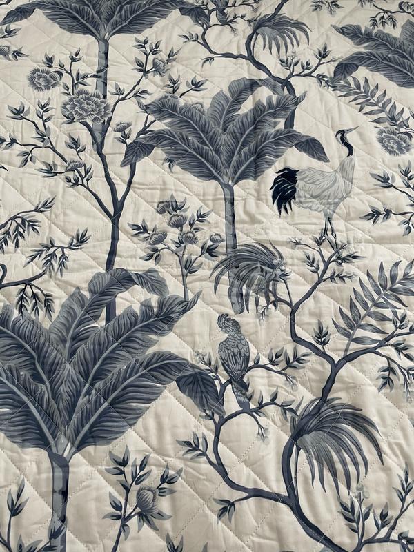 I picked this 3 piece bedding set to match my tropical decorations theme in my bedroom. It blended in perfectly with all my other Tropical decorations. It's beautifully made and highly comfortable.Its not very heavy it's light weight. The color is gorgeous and the pillow shames are soft as well as the top quilt. Totally recommend