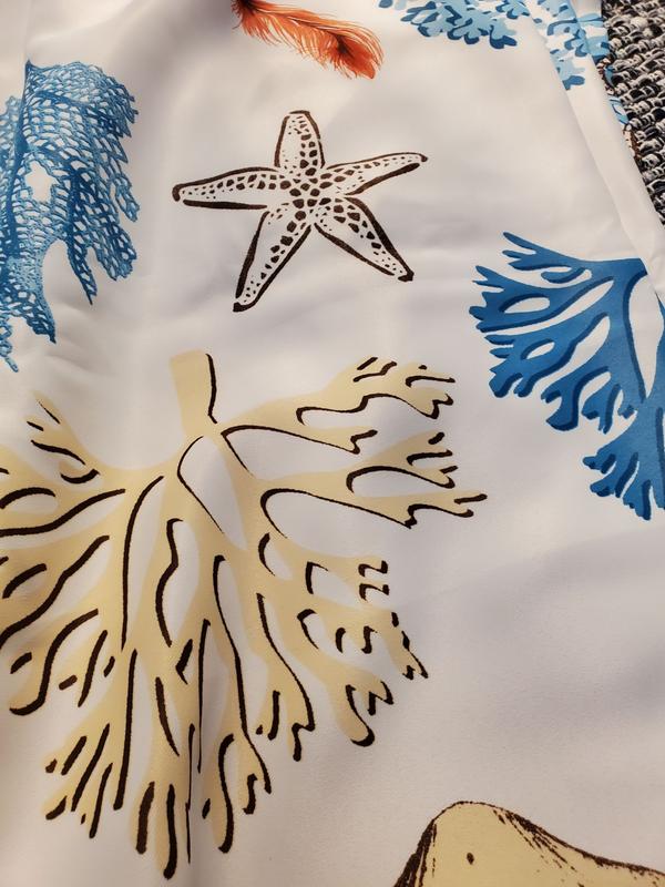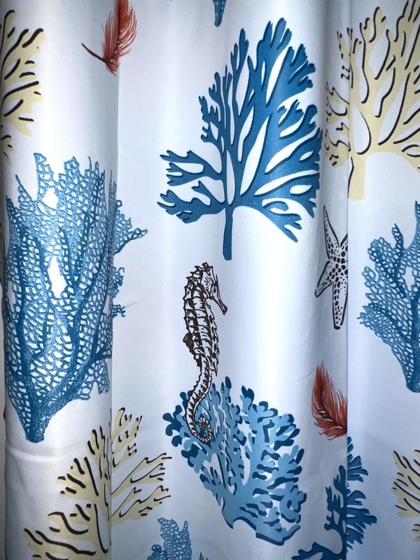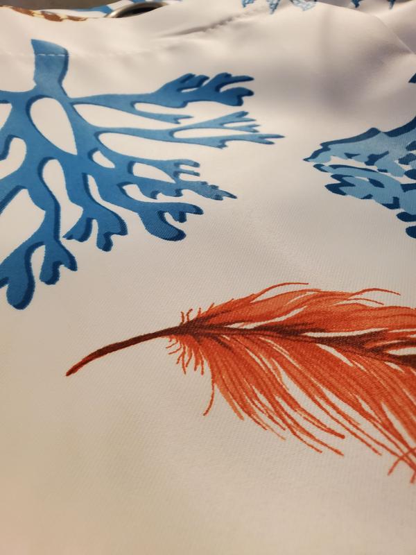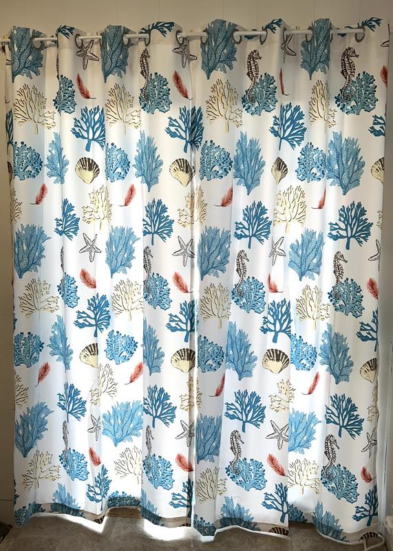 This Coastal Reef Feather Light Filtering Window Curtain Panel Set looks great and fits perfectly on the sliding door in my living room. The design is nice and relaxing and goes well with my living room. Easy to hang and care for.