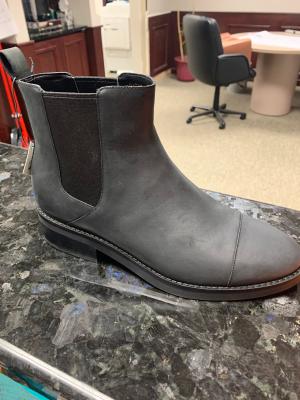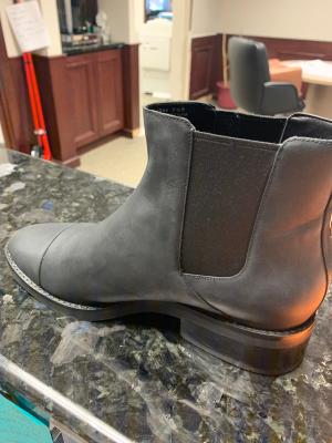 I loved these boots. I saw them in store, but I had to order my size. I saw they were more matte and a different look of leather, so I was prepared. The only reason I didn't keep them was the back part of the heel pinched. It was like the back part of the heel where it narrows to the ankle was too narrow. It felt like it would rub the back of my heel. I was super disappointed bc I wanted something utilitarian and chic.