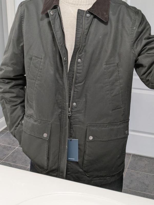 I recently have a Cole Haan jacket and I’m incredibly pleased with its performance and style. The waxed finish makes it impressively windproof and ideal for light rain, which is perfect for unpredictable weather. The fit is excellent, providing a sharp, clean silhouette without ever feeling restrictive, and the sleeves are just the right length to keep my arms fully covered. I especially love the classic corduroy collar, which adds a timeless touch to the design. Even without a hood, the overall look is sophisticated and works perfectly for layered outfits. This jacket strikes a great balance between functionality and style, making it a versatile piece in my wardrobe.