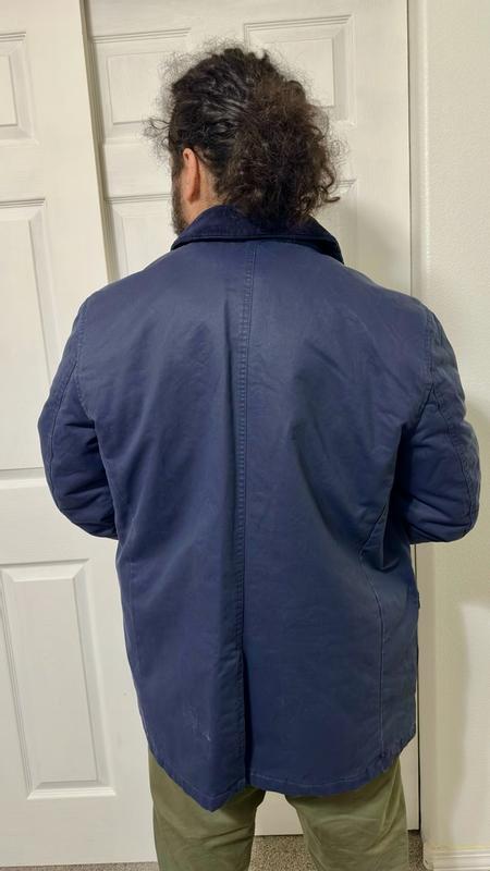 This jacket strikes a nice balance between practical weather protection and everyday style, making it a good choice for rain or shine. The waxed cotton shell has a substantial feel without being stiff, and the corduroy spread collar adds subtle texture and interest. There’s unique stitching and more corduroy on the underside of the collar, a heavy-duty zipper, and a single vent in the back. The fit is relaxed throughout and generally true to size – the shoulders are perfect for a ~42-44 jacket, sleeve length is appropriate but on the longer side, and the bottom hits at the upper thigh. I’d prefer that the waist was a bit more tailored, but it will be perfect for layering comfortably over a sweater or work flannel. The pocket layout is thoughtful, with handwarmer welt pockets on the chest, and flap pockets with snaps at the waist. The interior of the pockets are lined with soft fleece, which will be a much-appreciated touch on cold days. While it’s not a heavy-duty storm jacket, it should handle light to moderate rain well and looks polished enough for casual office wear or evenings out. Overall, it’s a versatile, well-finished piece that feels like a solid wardrobe addition.