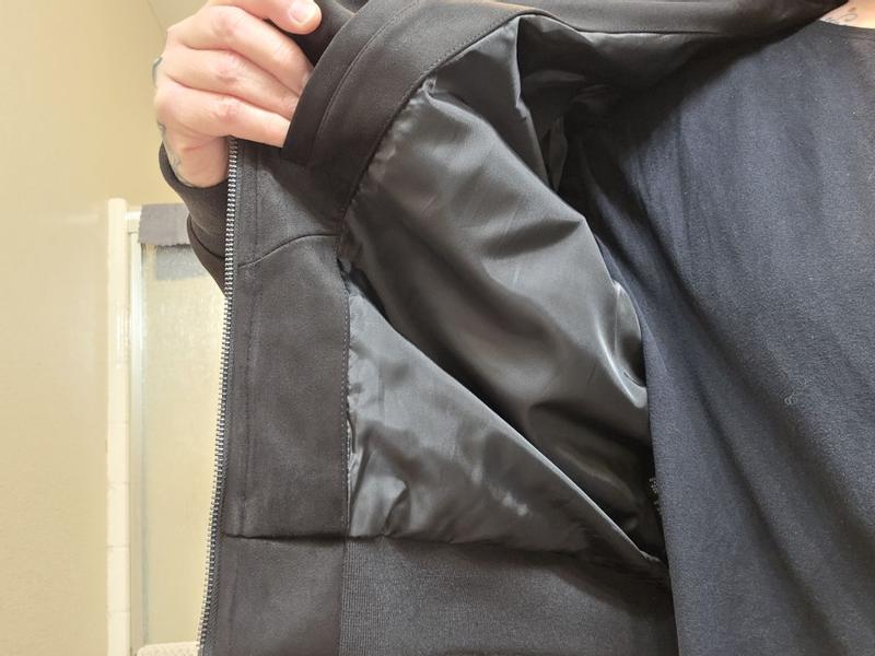 *I was incentivized with this product to give a fair and honest review.* I've never had a jacket like this — this nice. It's different, but in a good way. I like the way it feels and how it sits close to the skin, but not necessarily 'form fitting.' It comes across as classy and professional all while having a modern hip vibe to it. I'm a fan of having a breast pocket on the inside and this has that — inner left. The two outside hip pockets have one button each to close it up. The main zipper is of quality like the rest of the jacket. I'm not docking it any points, but the jacket itself sits a smidgen higher on the hips than I would like, but I guess that's the 'bomber jacket' style and I'm just used to lower sitting jackets. If only there was another inch or two in length, but maybe my torso is just long. There's a little heft in the weight if this jacket. I would consider it medium-light duty as far as performance and warmth. There's not really any filter to the jacket, but I'm sure the faux suede will insulate my body heat to an extent. Overall, I'm really happy and content with this jacket. It's not a daily wear, but something for special occasions where I need something a little nicer and more formal than my standard hoodie. Valentine's Day is coming up and I've got this in my plans.