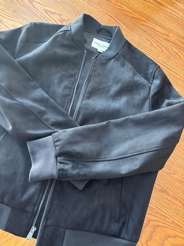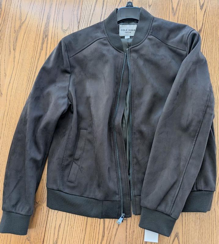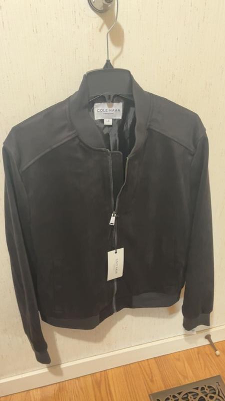 I’ve been wearing the Cole Haan faux suede bomber jacket for a week now and it’s one of the most comfortable and stylish jackets. The jacket is well stitched and feels of high end quality even the zipper is substantial. Even though it is faux suede it feels like real suede. It has kept me warm during the cold days and nights of winter and the fit is great. The arm length and torso length are just right for my frame. For a high designer jacket this stays stylish yet still functions well at keeping you warm.