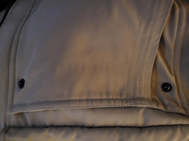 The Jacket is very warm, but 2 snaps are missing on the outer pockets.