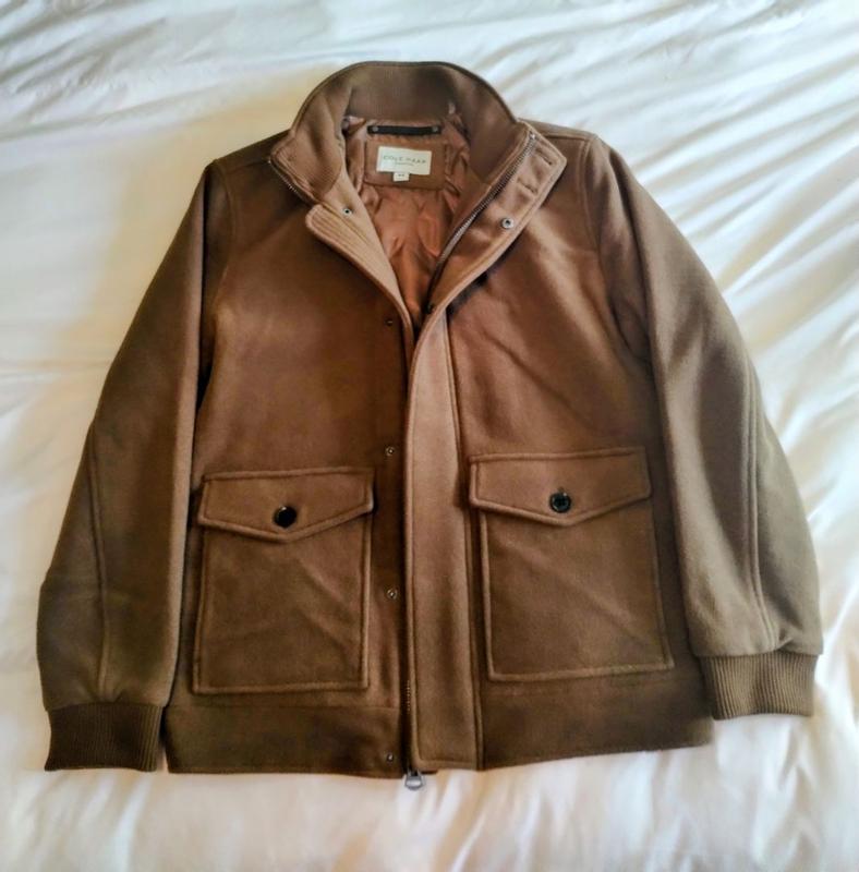 I received a Cole Haan Men's Stand-Collar Bomber Jacket from Influenster in exchange for my honest review. I am very impressed by the materials, comfort, and design of this jacket by Cole Haan. The fabric choices are great. The jacket is very thick and warm. Additionally, the jacket is comfortable and the fabric is soft to the touch. The bomber style jacket looks absolutely great. It is very fashionable and can be worn for a fancy occasion or daily. The color is timeless and matches with nearly any outfit. This has been the perfect addition to my winter clothes. The Cole Haan jacket is incredibly well made. There is an elastic waist around the back which helps keep it form fitting and extra warm. The pockets are deep and nicely lined. It has a high collar that can be buttoned up for extra warmth as well. This jacket stands out in its style and craftsmanship.