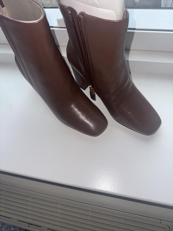 Bought these beautiful boots and was so excited, thinking i had finally found the exact black bootie i was looking for. Within a MONTH, the *fake leather* started peeling on the inside, and i was so mad at myself for not checking to make sure these were real leather. They're peeling on the boot itself as well as *both* heels already (revealing the plastic beneath!!!!) and i'm frankly kind of embarrassed to wear them, thinking i had bought something classy. Just looking at them now, the toes are peeling as well, and the zipper is already coming undone at the base on one shoe. If i hadn't bought these massively on sale i would be so much more livid.