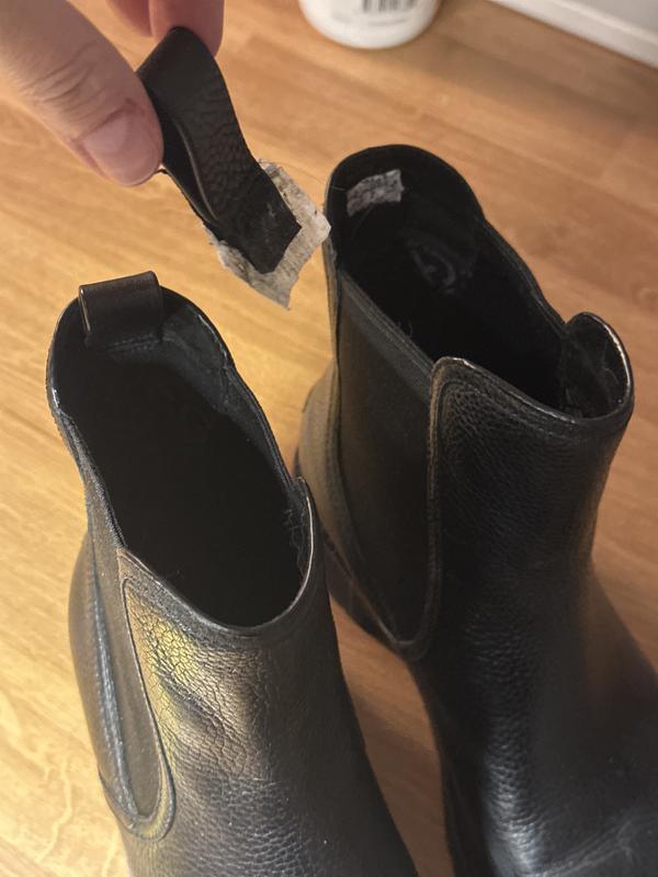 I bought these boots 2 weeks ago, and put them on less than 5 times. They’re super cute, but the pull tab on the back snapped off while I tried to put the boots on. I’m really disappointed ☹️