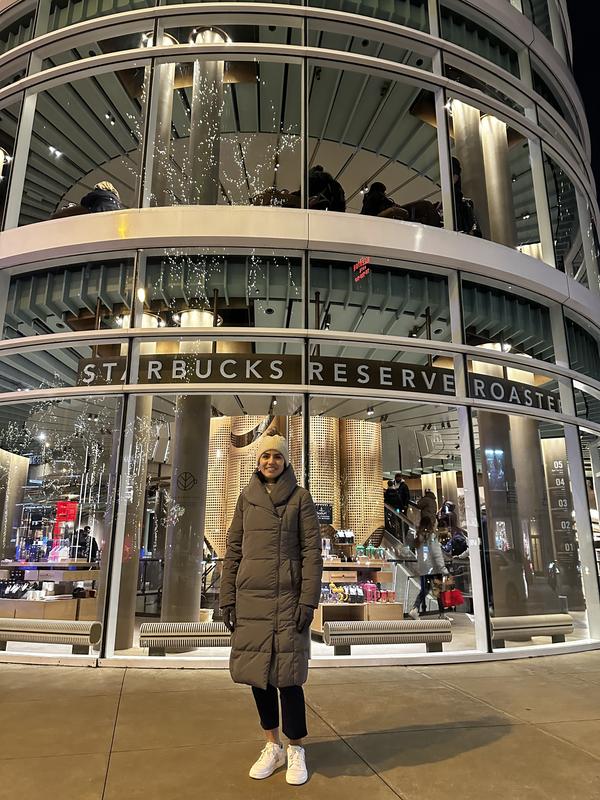 I love the style, color, andlength, and it isn’t overly warm if the temperature rises s bit. But be careful with the zipper. It tends to get jammed into the material, I almost returned it due to this. But I’ve figured out how to avoid this by taking a bit longer to zip and guide the zipper using my other hand. A bother but it’s worth it to me as I hate puffy coats but otherwise love this one.