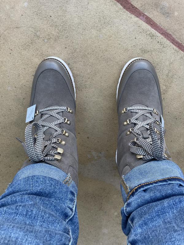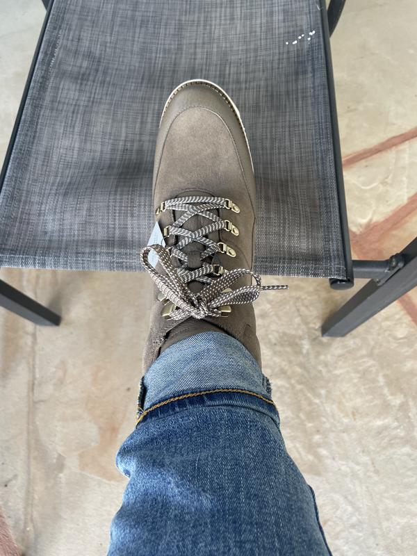 These are nice boots- they are super comfy but they are definitely not the color shown in the picture. I wanted the color shown but the real color was a dark taupe color. The boots were final sale so I’m stuck with the wrong color shoes. I wished the description would’ve been accurate. If I had know the color was different I wouldn’t have purchased these shoes.