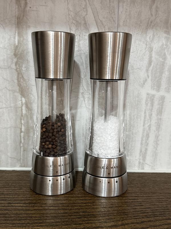Great salt and pepper shaker. Sturdy and easy to adjust thickness of grinds. Highly recommend!!