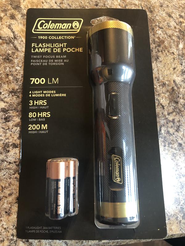 We have used our Coleman 1900 collection flashlight twice now and have greatly appreciated having it on hand! The first time we used it, we had to go under our crawlspace in order to fix something under the house. The LED light is perfect and created more than enough light for us to see under the house. It was the perfect weight to carry in a small space. The second time we used the Coleman 1900 collection flashlight was when we lost power during a recent snowstorm and was not prepared! Thankfully I had this flashlight handy and was able to use it! The LED light is perfect for seeing in the dark. There are 4 different light brightness settings, one being a continuous blinking light that would be perfect if you were trying to flag someone down outside in the dark. The other three light settings are perfect for using inside or outside and produce enough light to see well enough. You can easily turn the head of the flashlight to zoom in/out and expand the amount of light you need. The on/off button is easy to press and find in the dark. Every feature is smooth and easy to use! Again, the flashlight itself is a decent weight to carry around. I am not a fan of the leather carrying piece at the end of the flashlight. This makes it hard to stand the flashlight on its end if you need to have light facing upwards. It does help when carrying it around so I see its purpose. This does not reflect negatively on my use or review of the flashlight, just a personal preference!