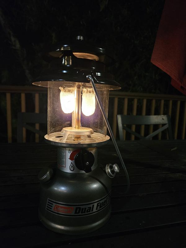 As an occasional camper, I wasn't sure how much use I'd get out of this Coleman dual fuel lantern, but it's become an absolute favorite. Yes, it's fantastic on camping trips, but it also shines my own deck at home. We don't have an outdoor fireplace, and honestly, this lantern gives me that same sense of serenity I've been craving. There's something magical about the warm, golden glow paired with that gentle hissing sound—it creates the perfect ambiance for unwinding after a long day. The adjustable flame lets me dial it down to a soft, flickering glow for a relaxed evening, or crank it up when I need serious light. Pair it with a cup of tea (made on my Coleman 533 with a tea kettle) or a glass of whiskey, and you've got the perfect setup for an evening to unwind and slow down.