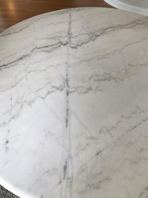 Have this table for a year now….didn’t know that marble stains …even water stains it and you can’t get the stains out…have tried every kind of cleaner to no avail….