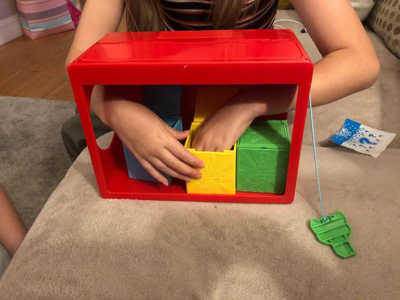 I sat down with two excited children to try this game out. I loaded the top draw with the ‘creepy crawlies’ which were rubber worms. They weren’t soft or slime or squishy. Just hard rubber little worms. Then I emptied the little pieces again of rubber into the 3 surprise boxes. And hid the plastic key in one of the boxes. The kids had a go feeling and opening the box. You have to find a key hidden in one of the boxes and open the lock before 30 seconds! Pretty impossible for children to do. My child ran out of time so I pulled the cord which let out the plastic worms. My child didn’t even feel them fall down on her hands. It was a huge let down, and has been sat untouched since.
