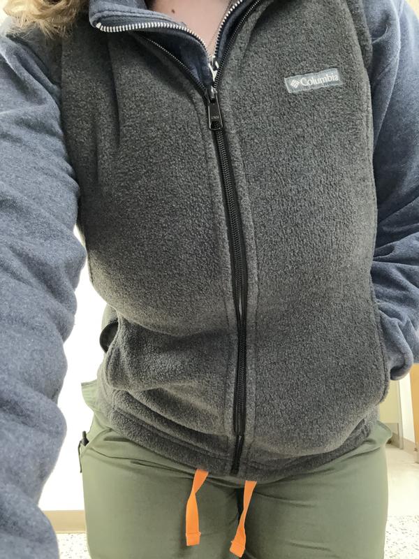 Very happy with my purchase. Great for a little warmth in hospital setting and casual. Have always like Columbia stuff. I have to outfitted my whole family with them through the years and they don’t disappoint. It is hard to find clothes to fit me. For reference, I am barely 5’ at 100lb.