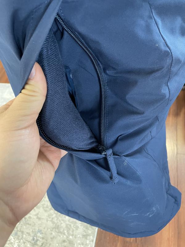 Keeps you very warm. Nice size pockets. I like the softness of the pockets/hood. I wish the arms were covered with the same material. When wearing a T shirt underneath, it feels almost like a plastic feeling and slight humidity/sweating makes it feel slightly sticky due to the "gold" lining. If you're wearing a long sleeve, then no issues. My 2nd thing is the zipper starts pretty low, so you do have to bend over to start the zip. I feel like its a little too low and constricts the walking as well. Since its a double zipper, you can always unzip the bottom a little to make it work better. An extra step which I would prefer not to need. Besides these 2 things, an excellent coat. I would not recommend wearing for 50F or above, or you'll get too hot. 30F would be perfect with a T shirt underneath even standing outside waiting for the bus, as long as the rest of your body is also covered as well, scarf, gloves, etc
