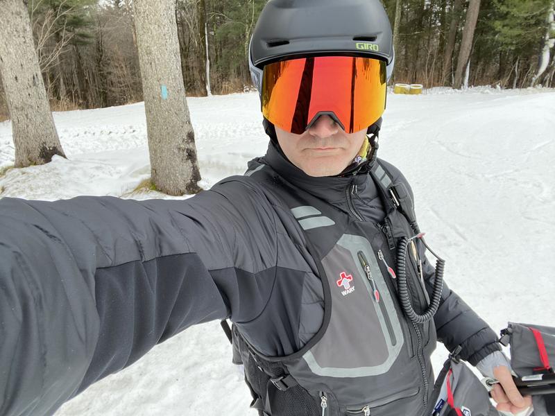 Less warm than other versions that don’t have the hybrid material under the arms.