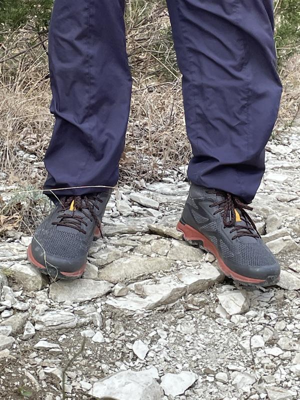 These hiking shoes are surprisingly comfortable. I have used them on paved and rocky trails and they were comfortable on both. I also walked through water and stayed dried. The only con for me was that they got warm which is good for cold weather but not when hot. Very satisfied with this purchase.