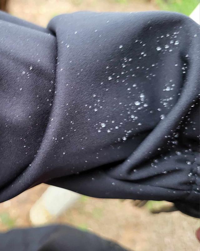 This jacket was great during our raining season in Cali. It has a good stretch to it so you don't feel confined and restrained from movement. The hood is big enough to keep your face and hair dry. It works great in the winds we have too. I used it a lot for coaching softball. It's light lightweight and doesn't weigh you down. The pull string in the middle helps with not looking so bulk and boxy too. Love this jacket.