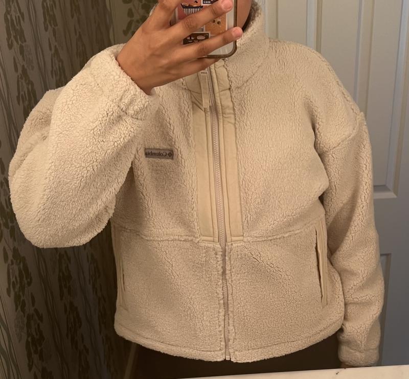 Super cute and comfy. However it runs LARGE! I am normally a medium in tops and ordered a small based off the other reviews. The small was quite large on me. It felt more like a true size large. I like the oversized look so it works out for me. I love that you basically get two jackets for the price of one. The fleece is super cozy and a bit less oversized than the windbreaker. Overall I'm pretty happy with this purchase!