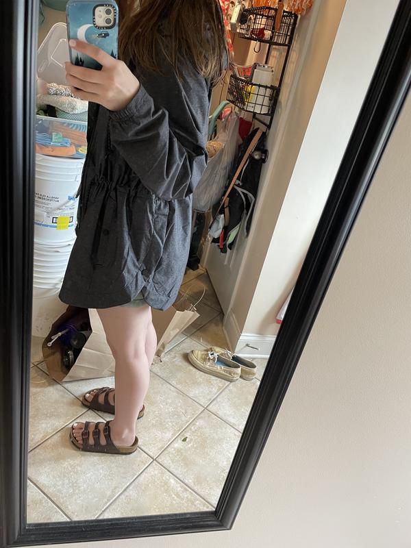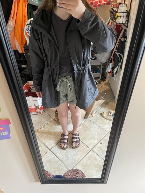 Perfect rain coat. Nicely lined. Has hood, pockets, draw strings to make tighter. Perfect!! Runs a little big.😊💕very happy with it.