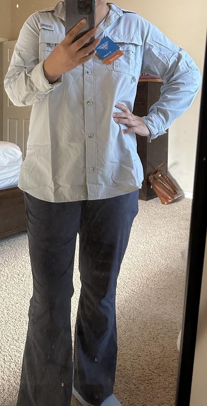 This shirt is exactly what I was looking for. It looks great, fits great, has so many useful pockets and details, and the PFG 50 will keep me protected in the sun. I love the soft grey - it will go with everything.