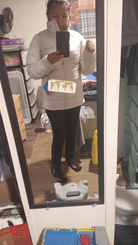 I love this jacket. It fits well, the burgundy color is beautiful and it's warm.