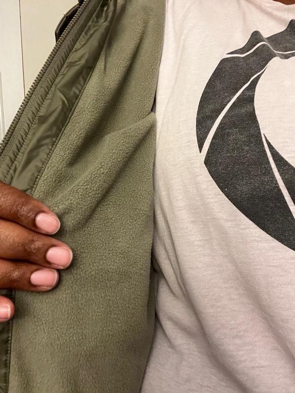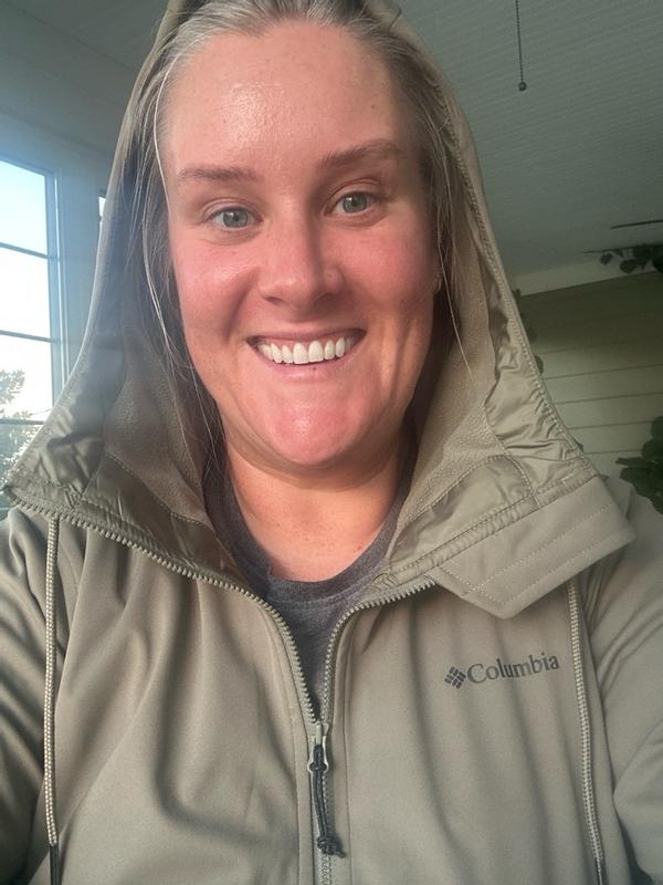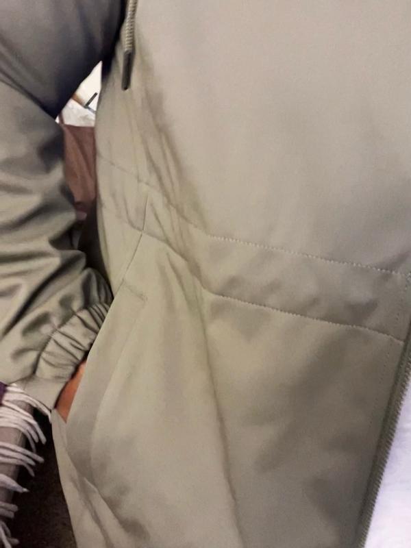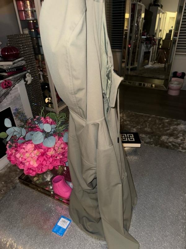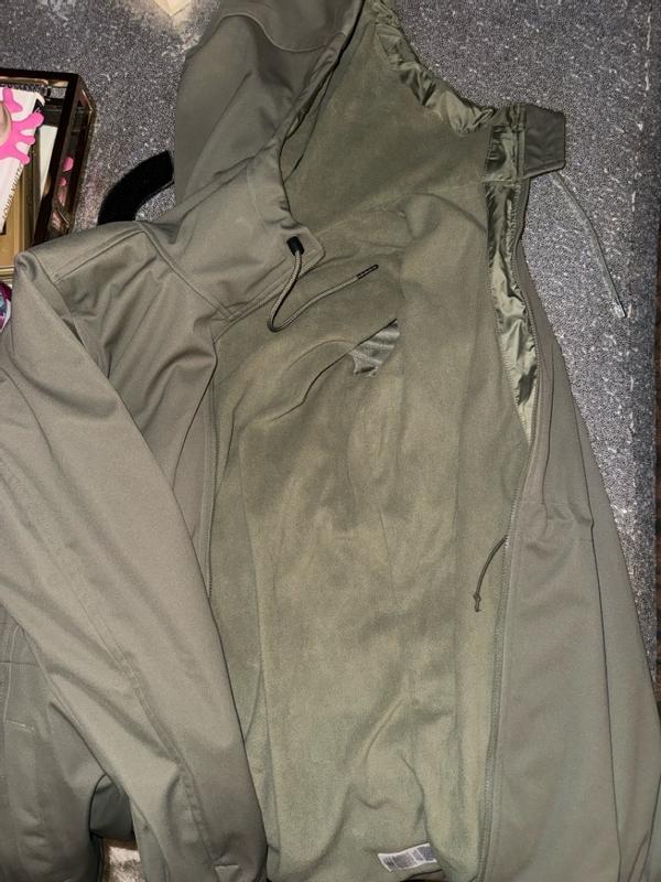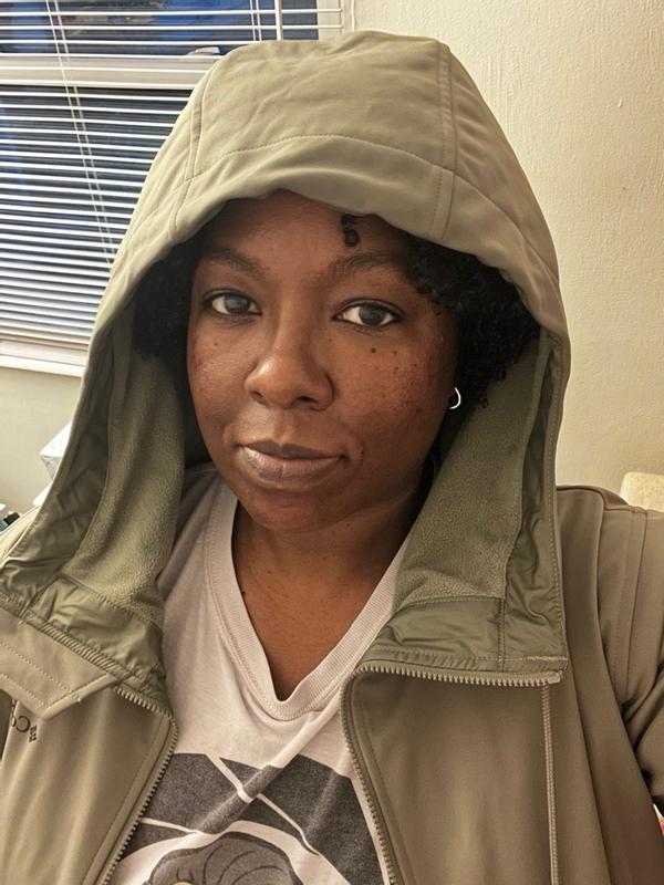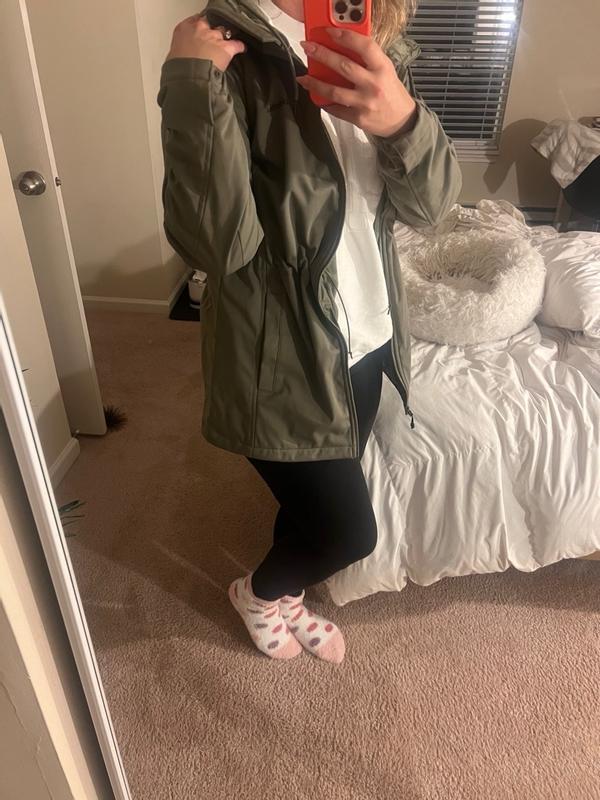 Pros: This is a soft jacket with a cozy fleece lining. The khaki color is a subtle one and looks better in person than online; the construction is of good quality with attention to detail. The warm, fleece-lined hood sits on the head in a flattering way, and its flap and drawstrings will keep the wearer warm and dry during spring soccer games. The sleeves are elastic at the wrist but have an additional snap adjustment. The pockets have a snap closure, too, which will be good for travel. One con: I am 5'2" and 118 pounds in a consistent size 6 petite, and the small was too snug around the hips, so I kept the medium which I had also ordered. The jacket is really a misses size, but because of the elastic sleeves and waist cincher, it looks okay, The pockets are not lined with fleece, which would have been nice, but this is a good jacket. Bear in mind that, according to the tag, it is water repellent, not waterproof, but it should do the job in a light rain.
