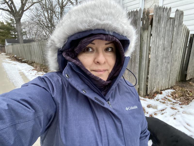 18•F I went to walk my dog, I am wearing a sweater + Leggings + my Columbia Jacket I was so happy walking my dog for about 45 min