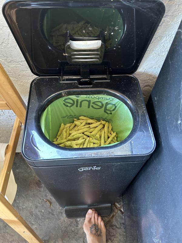 Please note I have reviewed and submitted this already After receiving the genie compost bin through the stellar product testing panel here is my review. We have loved this compost, in particular the size and lack of smell! We filled up our old bin so fast and was messy to discard contents. The foot pedal was great! So much less mess and good ease of use. We have not smelled any odor since we received, which is impressive alas we make a lot of compost! The bag was easy to replace, took a few times to figure out how much we could fill it up, but figured that out quickly