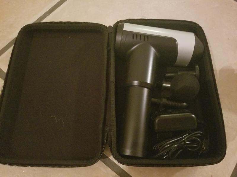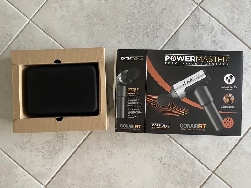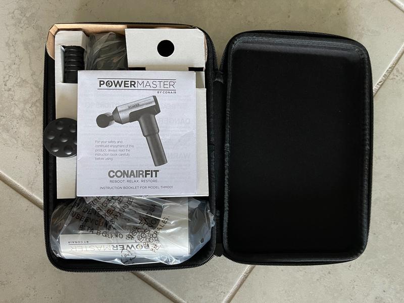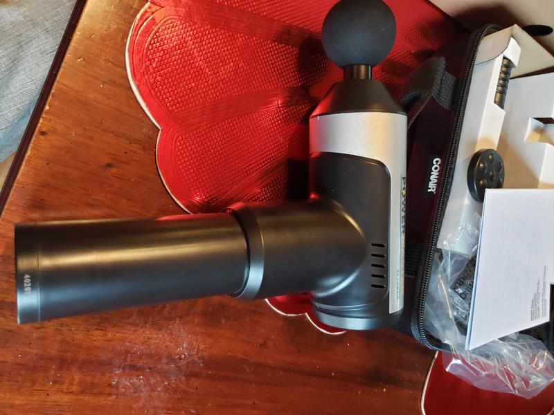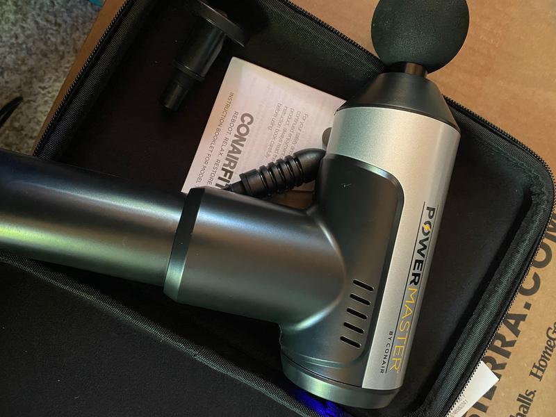 Disclaimer: I received this product in exchange for an honest review. I was very excited to receive this massage gun as I have been a lifelong athlete, have almost continuously sore and tight muscles, and have used a similar product in the past. A friend of mine purchased a similar product through her physical therapist. While this Conair version might not be professional-grade I can hardly tell a difference between this one and the one she bought for twice the price! The variety of tools and power settings means you can use this on pretty much every muscle group as needed. I'm amazed by how long the battery lasts on a single charge with so much continuous use while at high power settings. The storage case is not divided or sectioned for each peace and the charger, but it all fits snugly enough that it doesn't rattle much. Also, the case is soft and formed into a box shape. So, if you are traveling a lot with it, or packing it you might have to be careful. But, for home use it is perfect. I would happily buy this product again for myself, or recommended to someone looking for a similar one.
