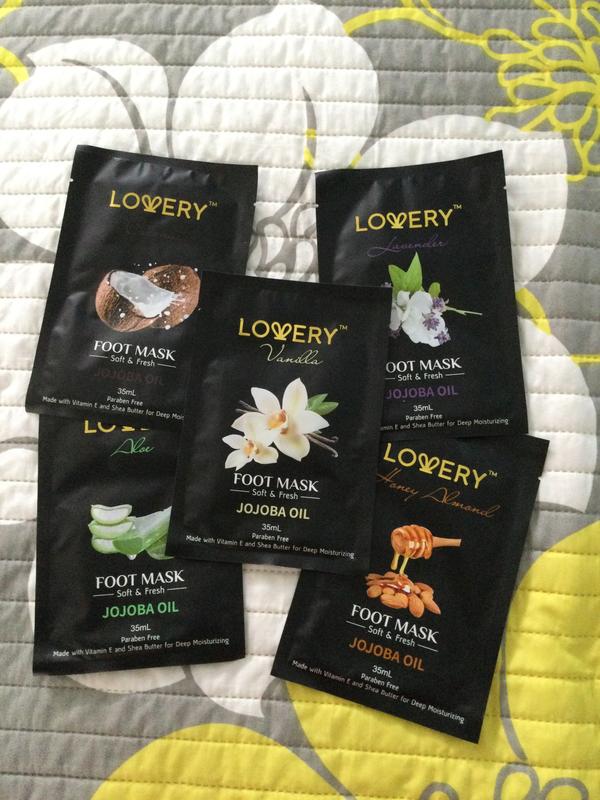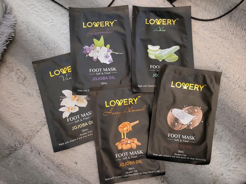 I have loved all Lovery products that I have tried before, but these foot masks aren't that great. The scent selection is awesome and they all smell great. The foot mask is too wet on the outside though. My first use, I didn't put socks on over the mask and my feet were freezing by the time I took them off and the end result was temporarily moisturized feet. The second use, I put socks on over the masks and the socks soaked up all the moisture. My advice to the makers would be to put a dry layer on the outside that would keep all of the moisture going directly to the feet. Overall, these foot masks are a pretty good way to moisturize your feet, but not the best that I have used.