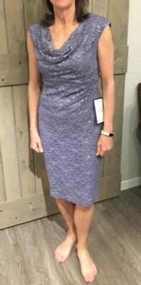 Very pretty dress. Very comfortable and flattering. I had to return only because I could not tell in the photo how sparky it was. I thought more lacy and a bit of sparkle. This is very much sequined with sparkles and was too dressy for the event I was buying it for.