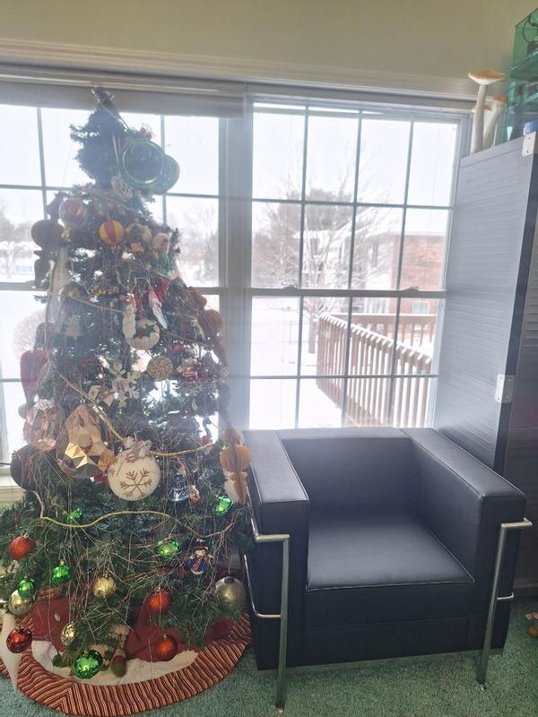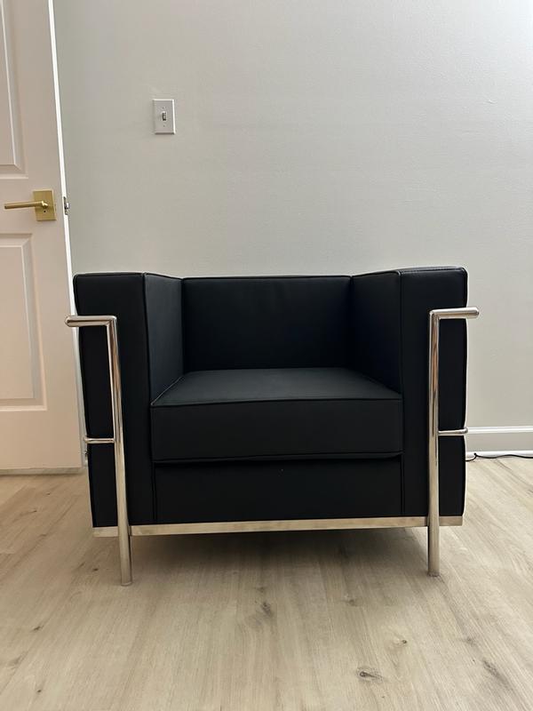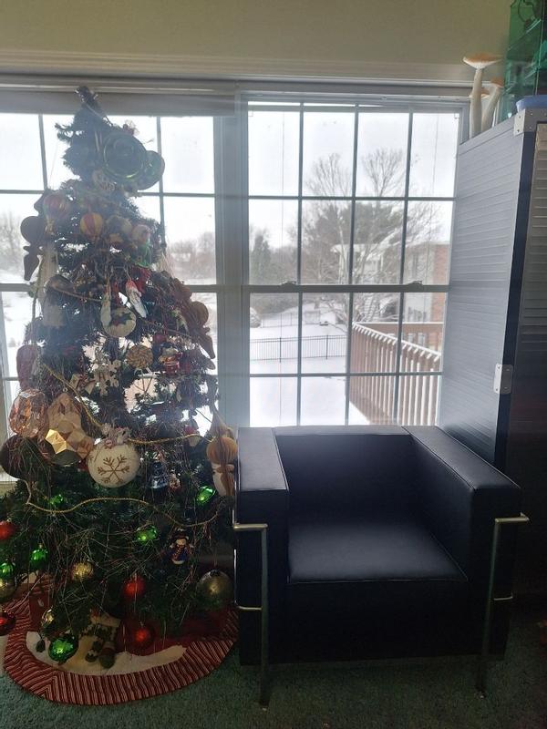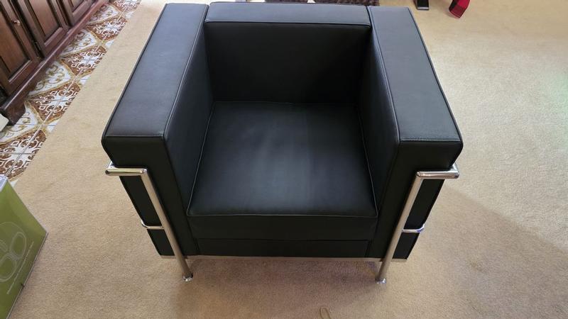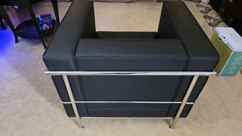 Received this gorgeous chair complimentary from Influenster for my honest review. The chair arrived fully assembled, only needed to screw on foot pieces. The chair is very high quality, strong construction and very nice leather (soft and durable). The comfort is very good and it feels like a chair that will last forever. I highly recommend this chair. It would be great in a business waiting área or lobby as well as in a home as a nice accent piece.