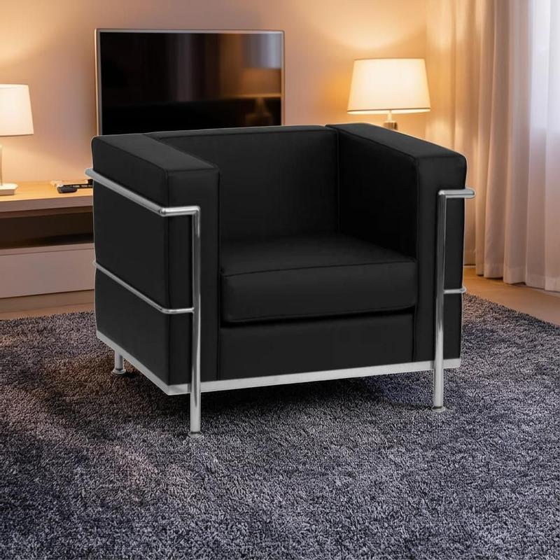 EMMA+OLIVERContemporary Leathersoft Chair With Double Bar Encasing Frame