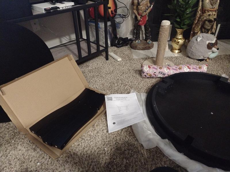 So the package came in day correct time incorrect unfortunately the box was very damaged in the corner and it did not come at all with its hardware and it's super sad that even in the instructions it says can be broken or missing hardware that's alarming. So now I got a table but no screws or nothing to actually assemble it so I'm very disappointed and in this purchase