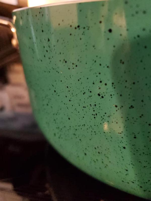 The nonstick feature of these pots and pans are a life saver! They make a great omelet with little butter. The nonstick flavor helps me cook with less grease/butter making my meal a bit healthier. They cook food evenly and I have not noticed any hot spots on the pots. The cooking utensils with stands helps keep your food and counters safe since it doesn’t allow them to touch. The whole set is very well made. The handles are all tight. All the lids fit perfectly. I love the speckled egg look teal with specks of a darker blue. It brings a bit of personality to the set.