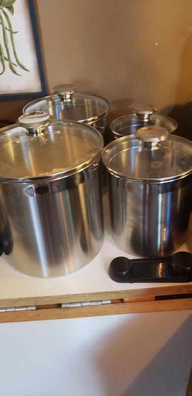 I had been looking for a set of canisters with gaskets to keep my dry goods in and I am so happy with this set! They are all great sizes for anything you would want to keep in them. The stainless finish goes with any decor and especially mine since all of my appliances are stainless. The quality is amazing! I love the glass tops so that my husband is able to see what is in them without opening all do them to find what he needs.